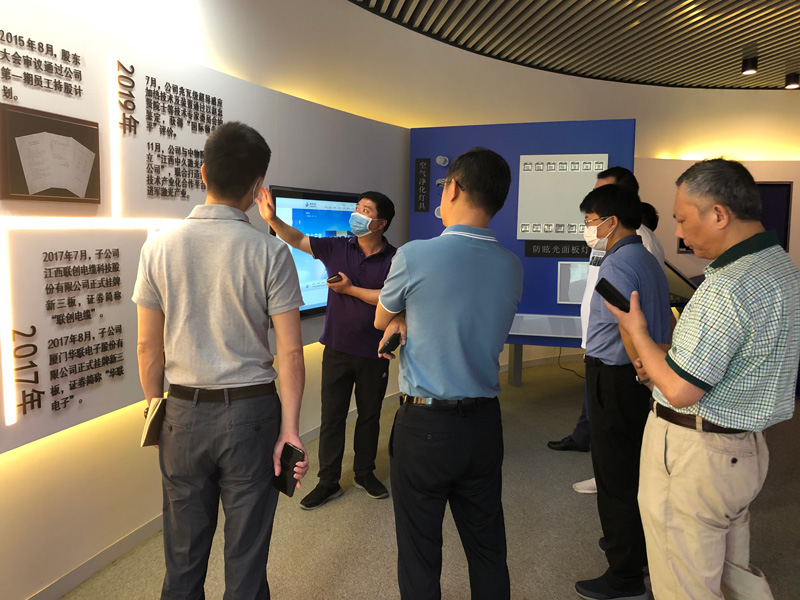 傅小新領導一行先后參觀了科技展廳、聯創(chuàng)超導、中久光電生產線,詳細了解企業(yè)發(fā)展歷程、生產經營、高溫超導、激光產品應用等情況。