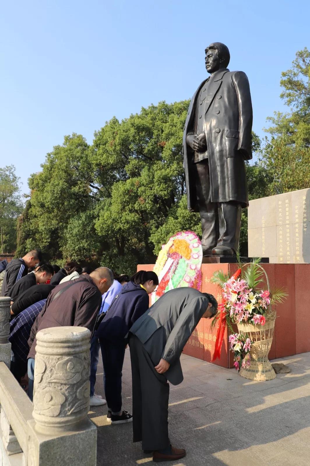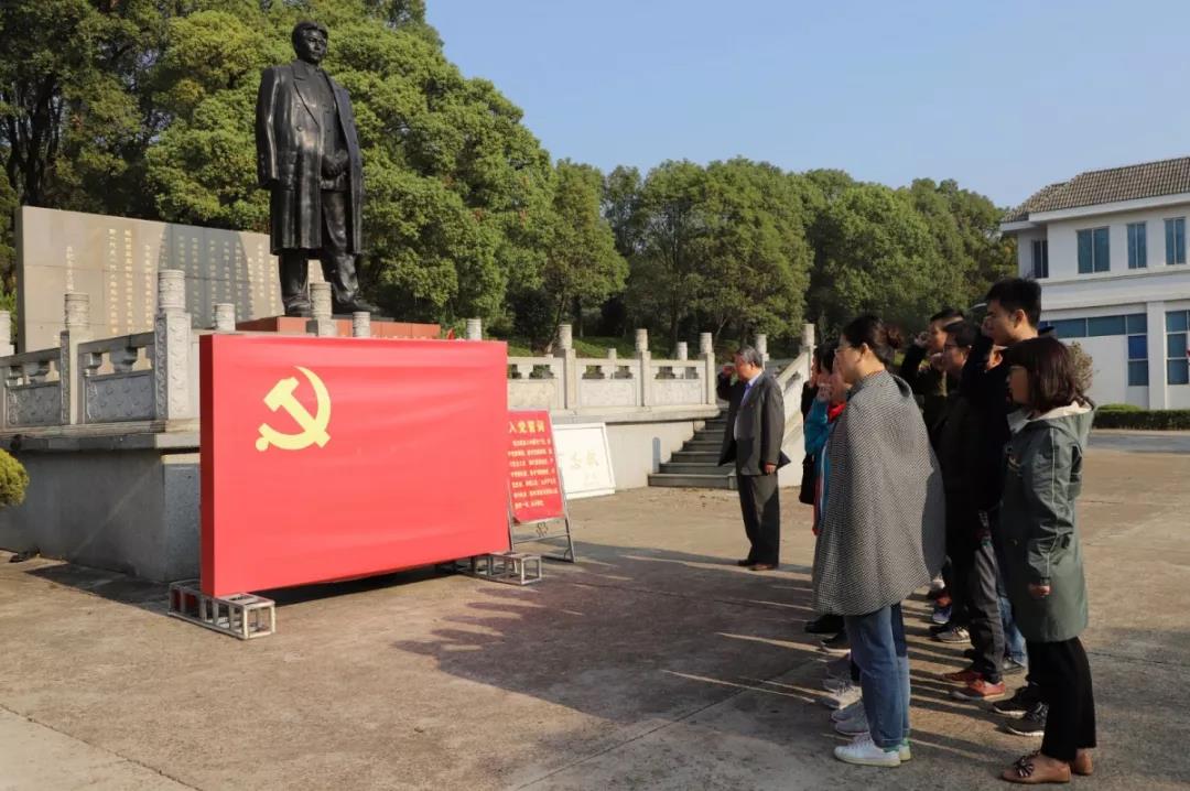 在方志敏銅像前、在鮮紅的黨旗前,全體黨員佩戴黨徽,莊嚴(yán)舉起右拳,重溫了入黨誓詞,并敬獻(xiàn)了花圈,肅立默哀。